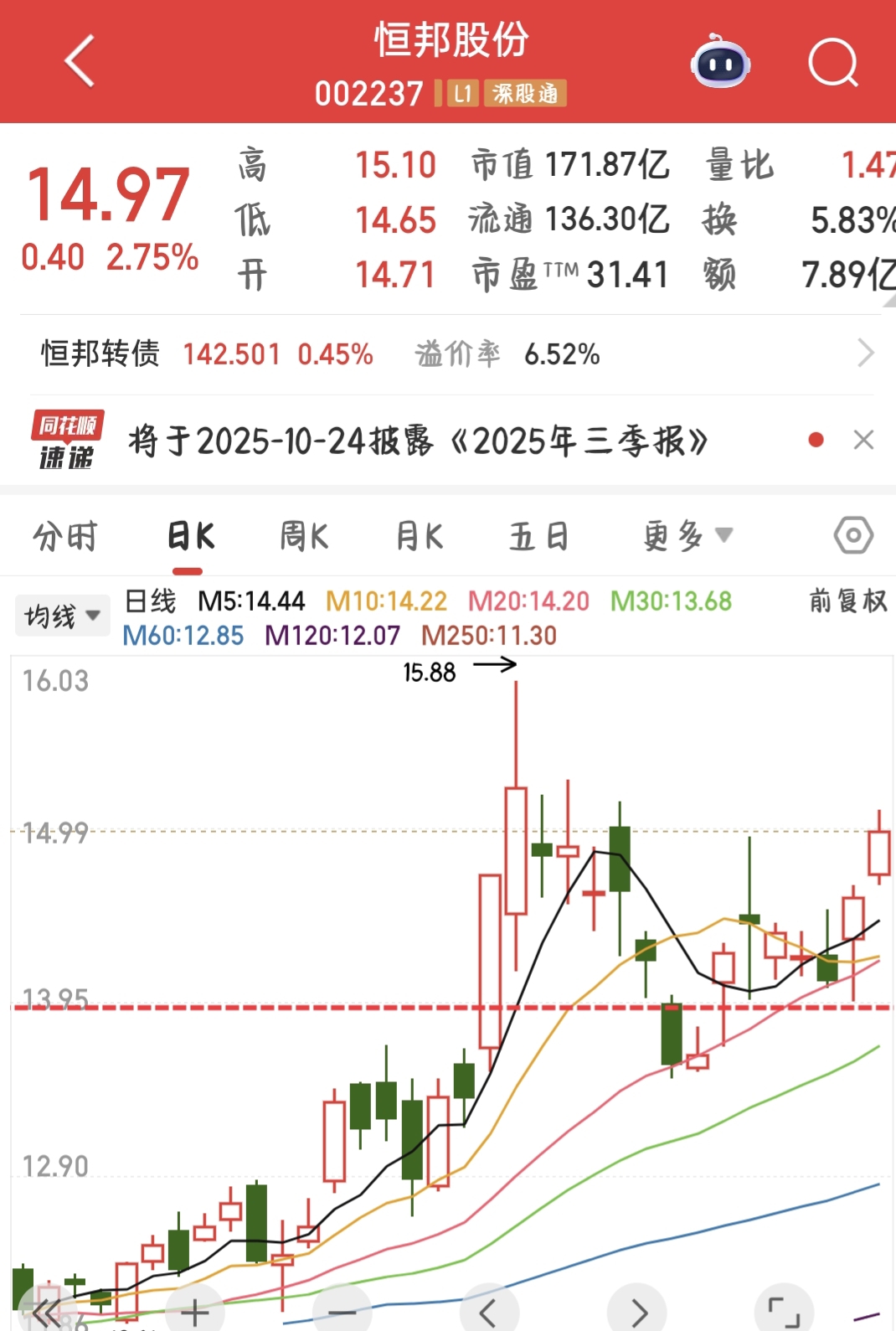 $恒邦股份(SZ002237)$ 纯图形看港股的赤峰黄金和恒邦股份最近的走势很像的!赤峰黄金9月8号突破下降趋势9号见小高点后回踩18号见底正好打到趋势线!恒邦9月9号突破14的箱体,10号见小高点后回踩18号见底正好也是打到13块多箱体的顶部!后面的走势小阴小阳二个股都差不多!今天赤峰大涨,恒邦明天会不会一样呢?开启新的一波升势还是值得期待的