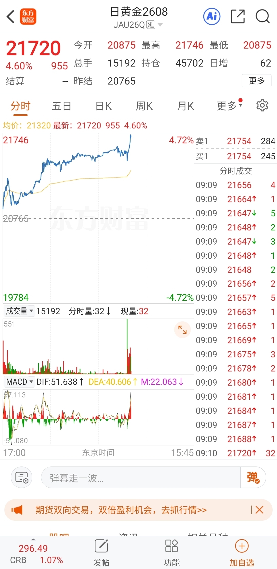 $恒邦股份(SZ002237)$ 黄金期货,日子开盘后保持暴涨态势