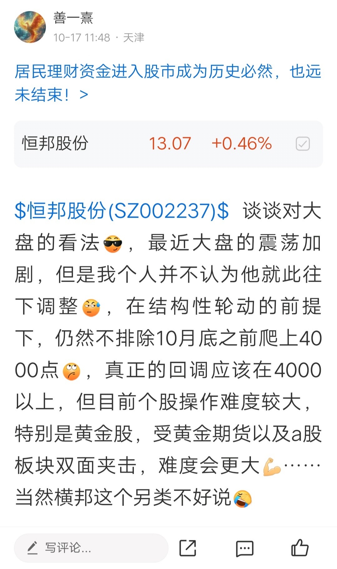 ,不相信大盘就此调整(当时是3877),不排除10月底之前会爬上4000点