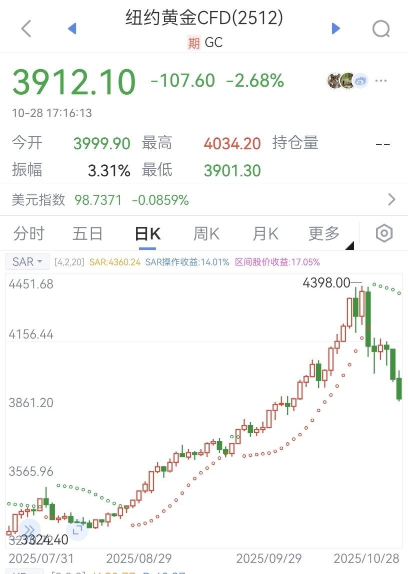 $恒邦股份(SZ002237)$ 活久见,黄金期货三连跌盘中破3900