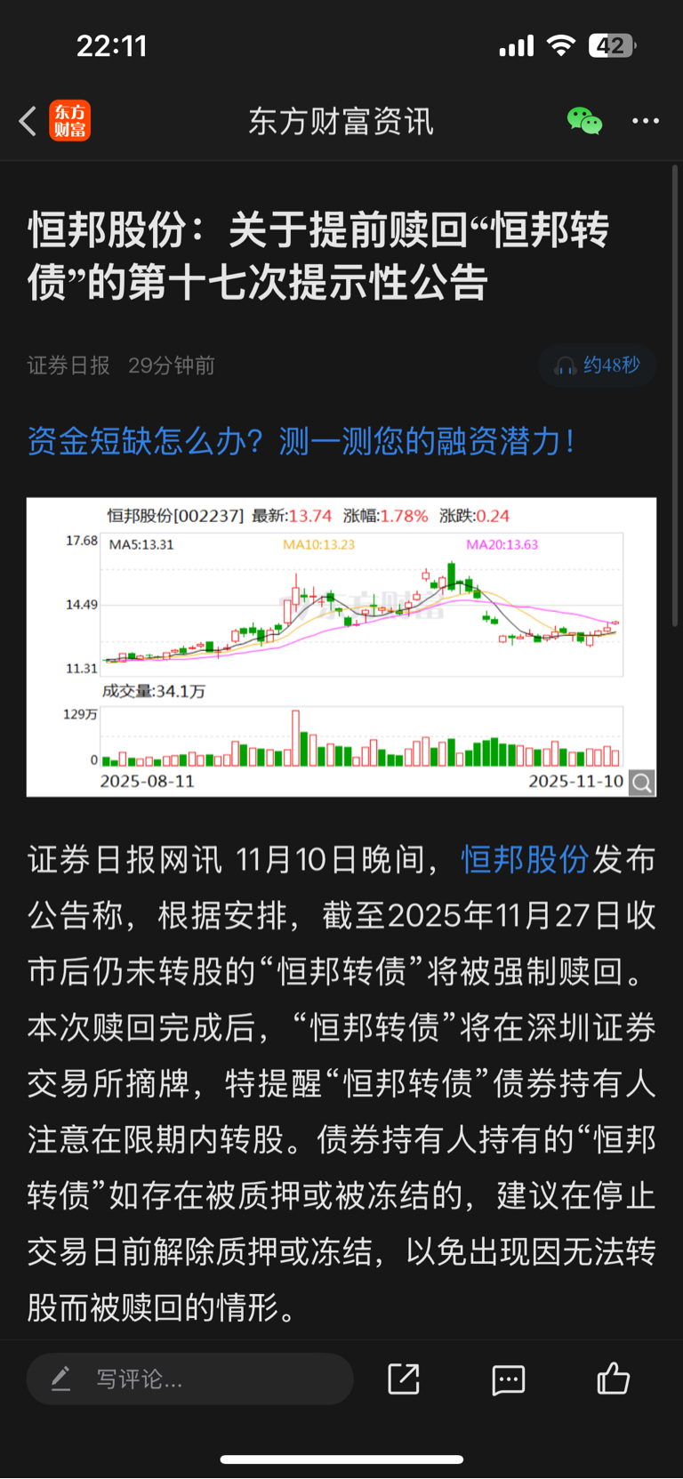 今天发公告第一次涉及强制回收转债将债务转化为股票作为净资产!看好行情