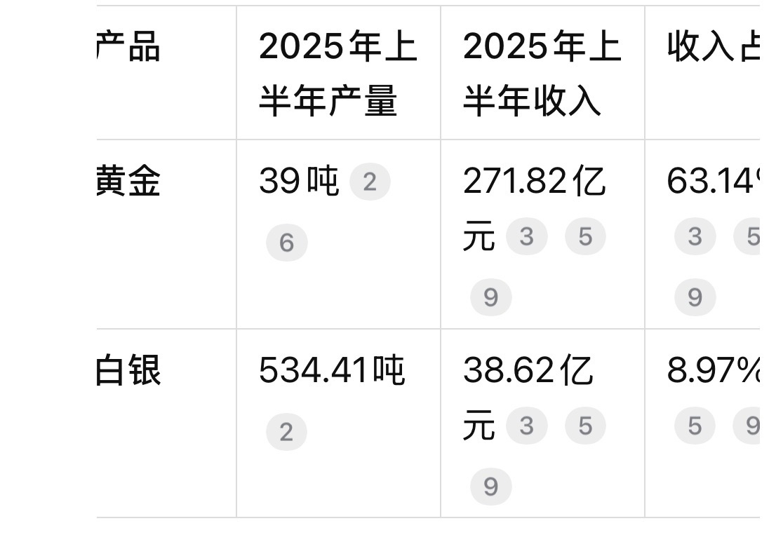 2025年上半年黄金39吨,白银产量为534.41吨,黄金和白银价格上涨对公司效益有提振作用。管理层误判金银走势,套期保值确实缺乏战略性眼光!