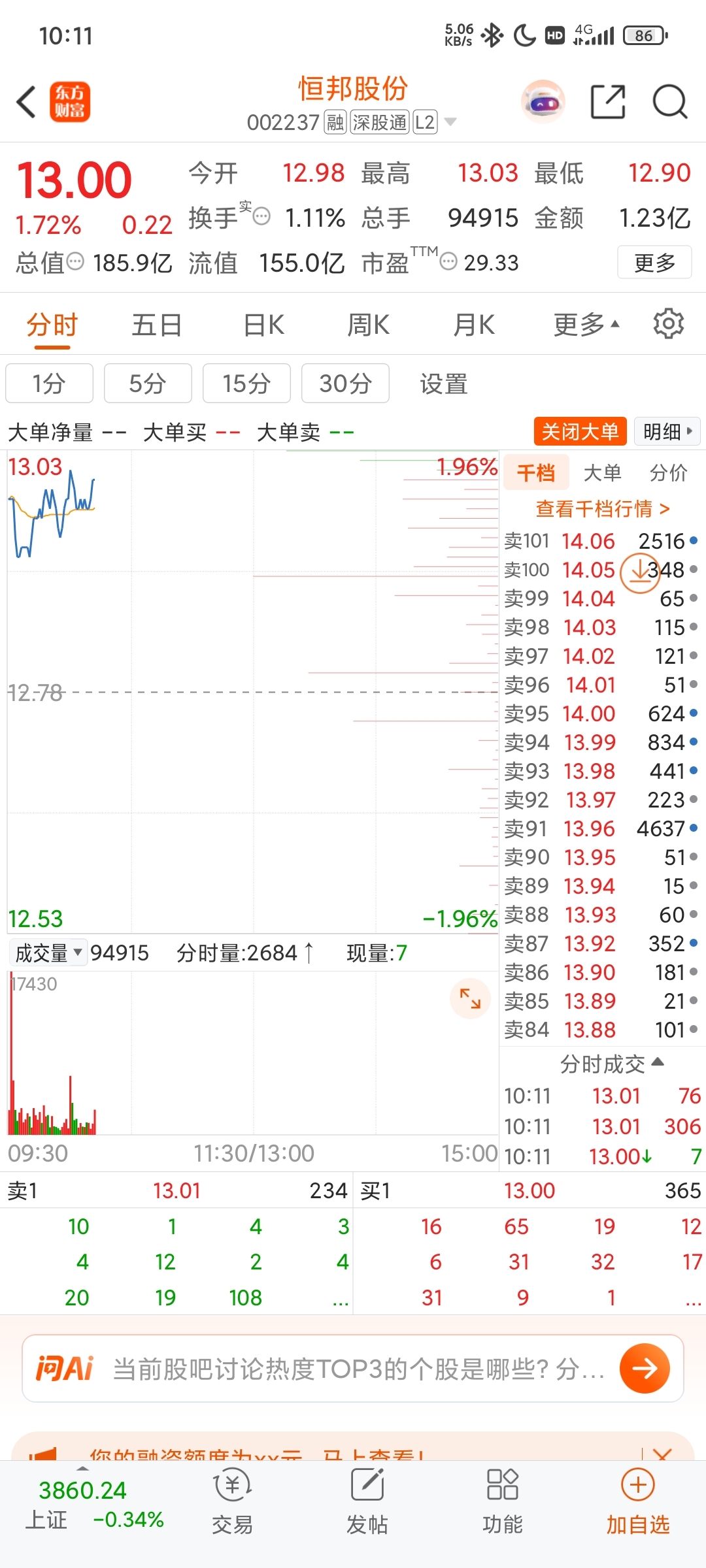 $恒邦股份(SZ002237)$ 涨停板没挂单,快拉涨停板!