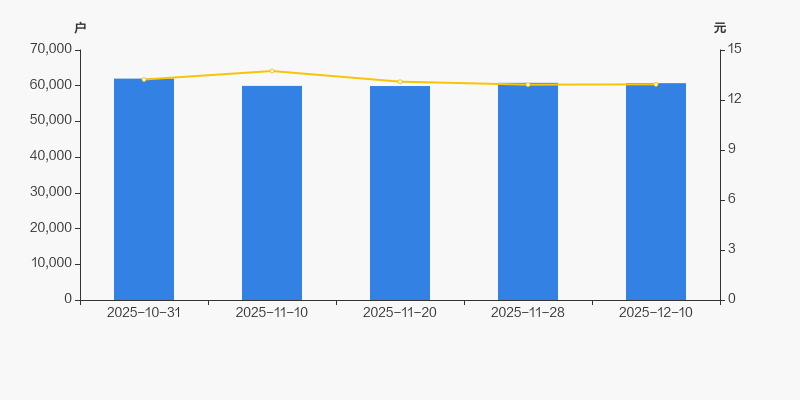 截至2025年12月10日,公司最新总股本为14.3亿股,其中流通股本为11.92亿股。最新户均持有流通股数为1.96万,较上期略有上升;户均流通股市值为25.41万元。