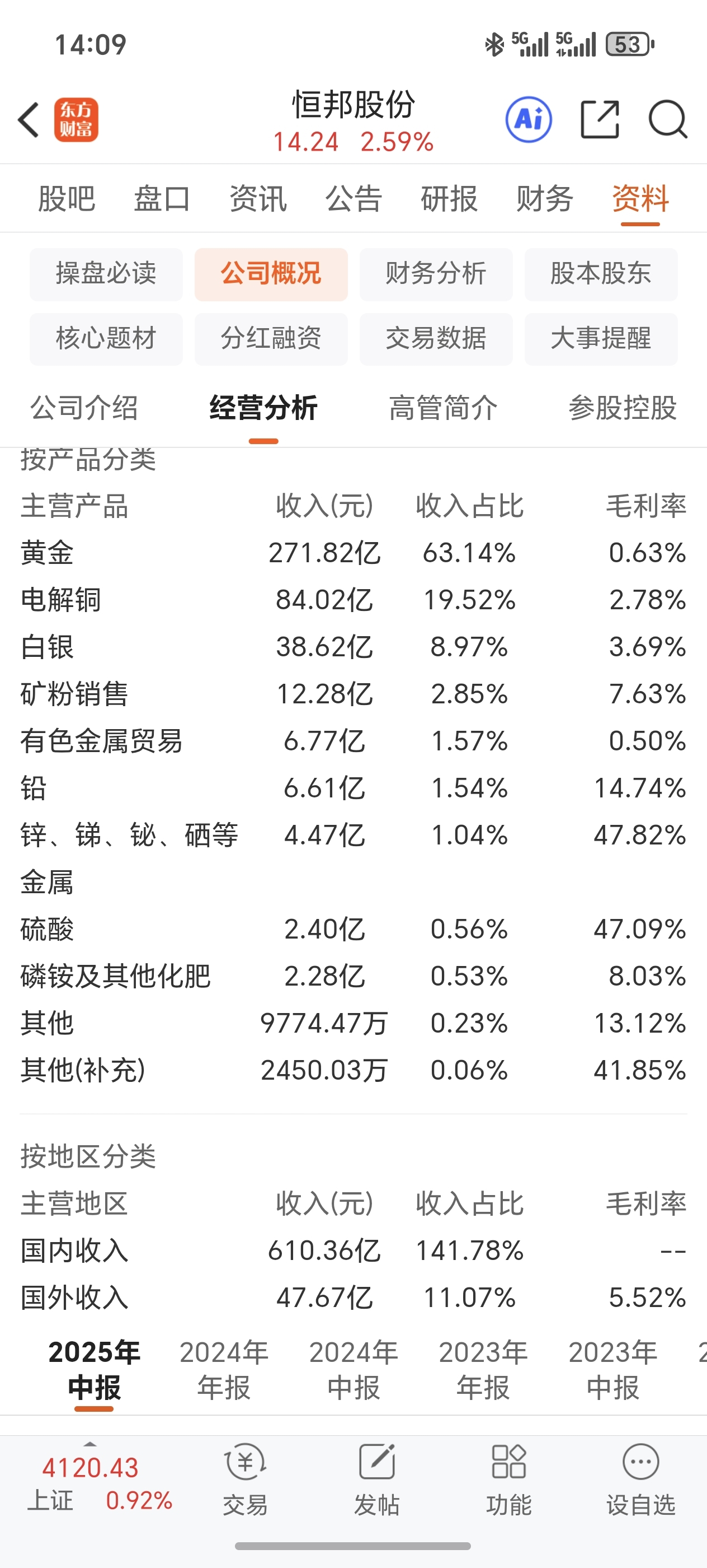 看业务结构,这金银铜都是大比例啊,这一波金属涨价,股价没啥表现呢,不应该啊。有什