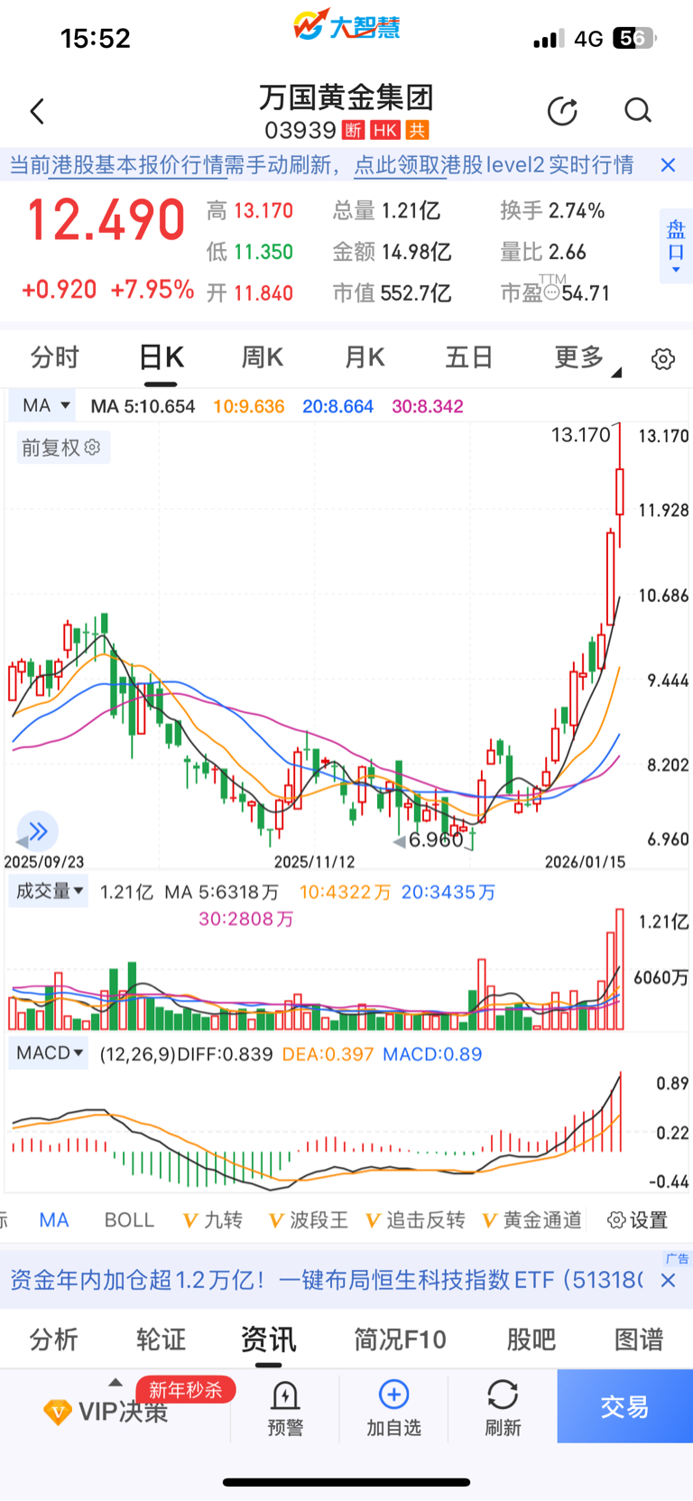 $恒邦股份(SZ002237)$ 快干,持仓的万国黄金,再涨一点,说不定就可以把市值干回来了,公司啥都不要也行