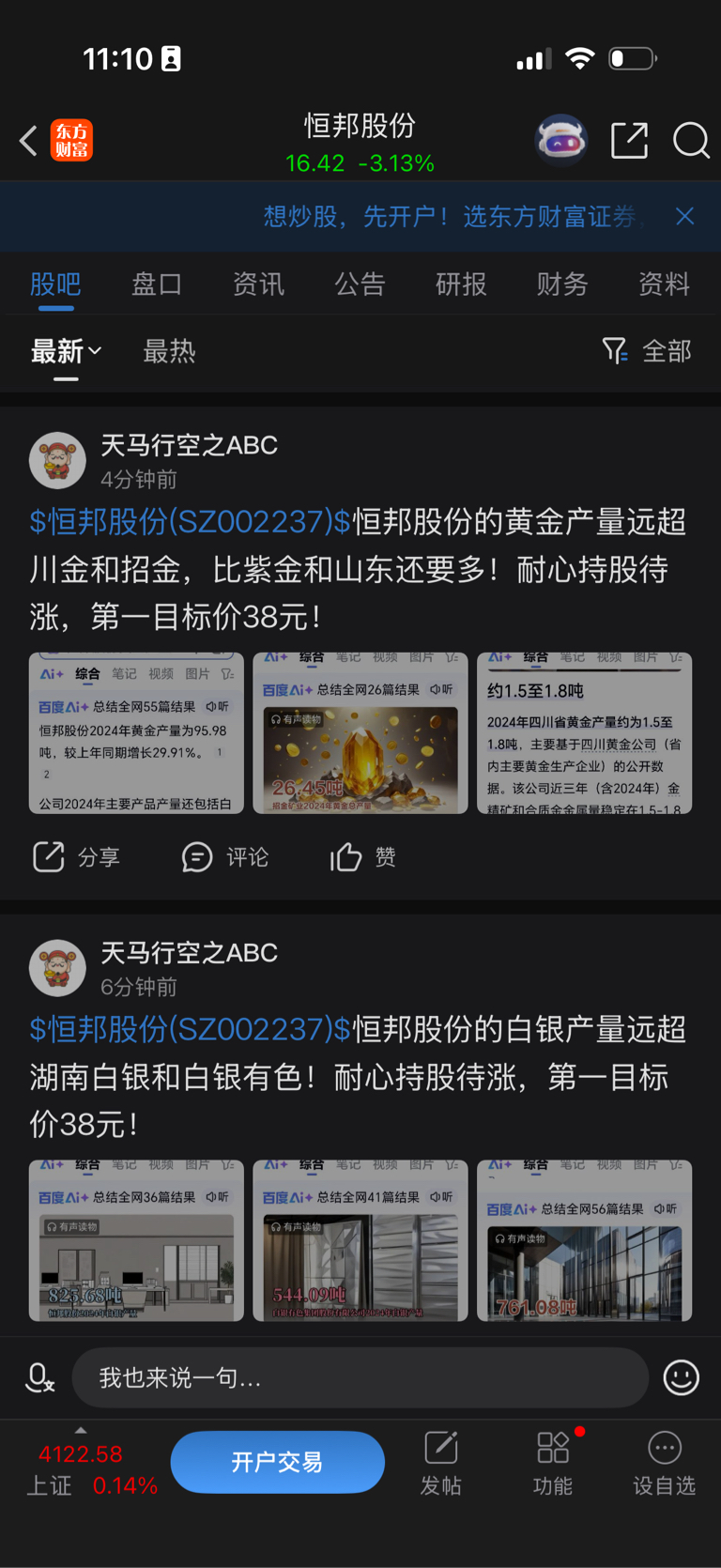 温馨提示: 1.根据《证券法》规定,禁止编造、传播虚假信息或者误导性信息,扰乱证券市场;2.用户在本社区发表的所有资料、言论等仅代表个人观点,与本网站立场无关,不对您构成任何投资建议。用户应基于自己的独立判断,自行决定证券投资并承担相应风险。《东方财富社区管理规定》