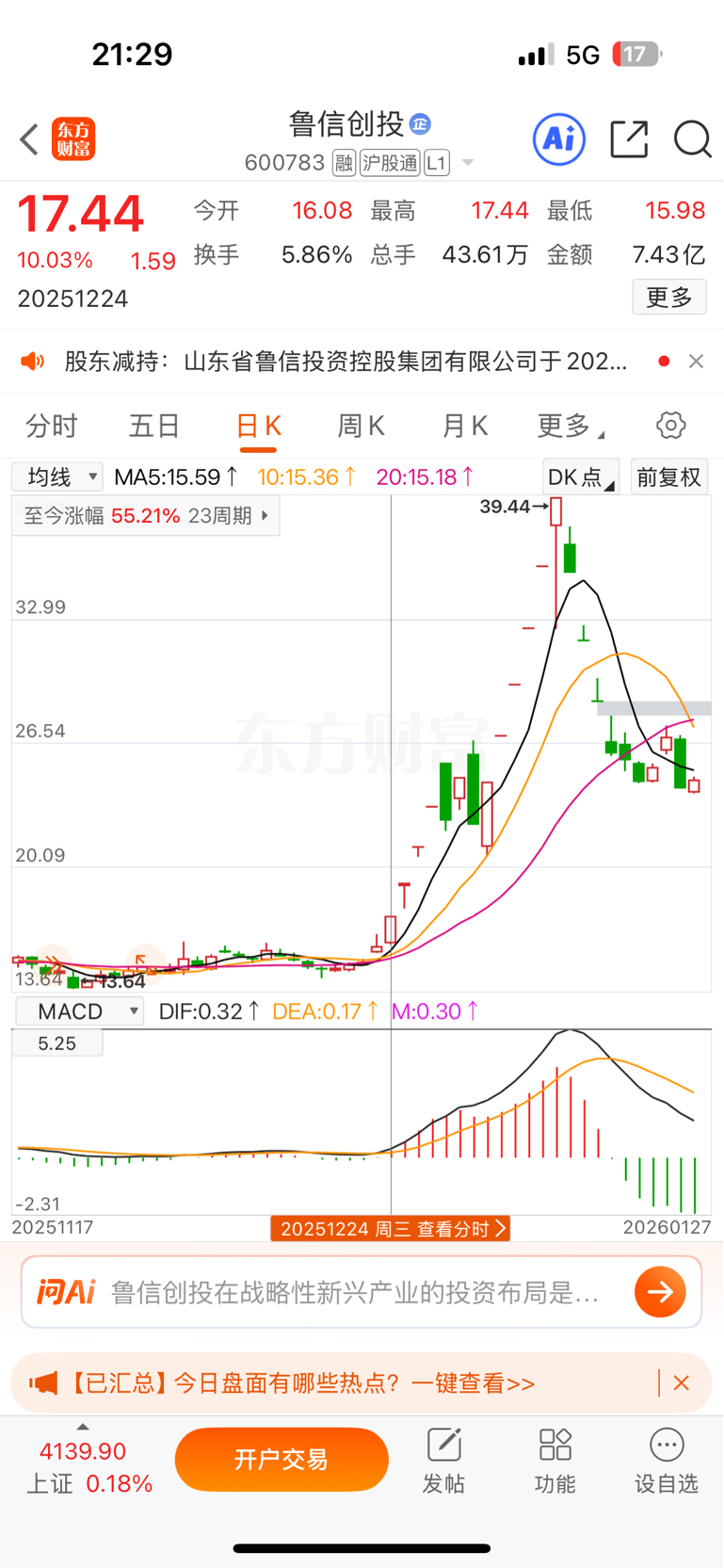 鲁信创投发布减持后,是第二天炸板强势洗盘快速回封,我都没有被洗走,吃了100多个