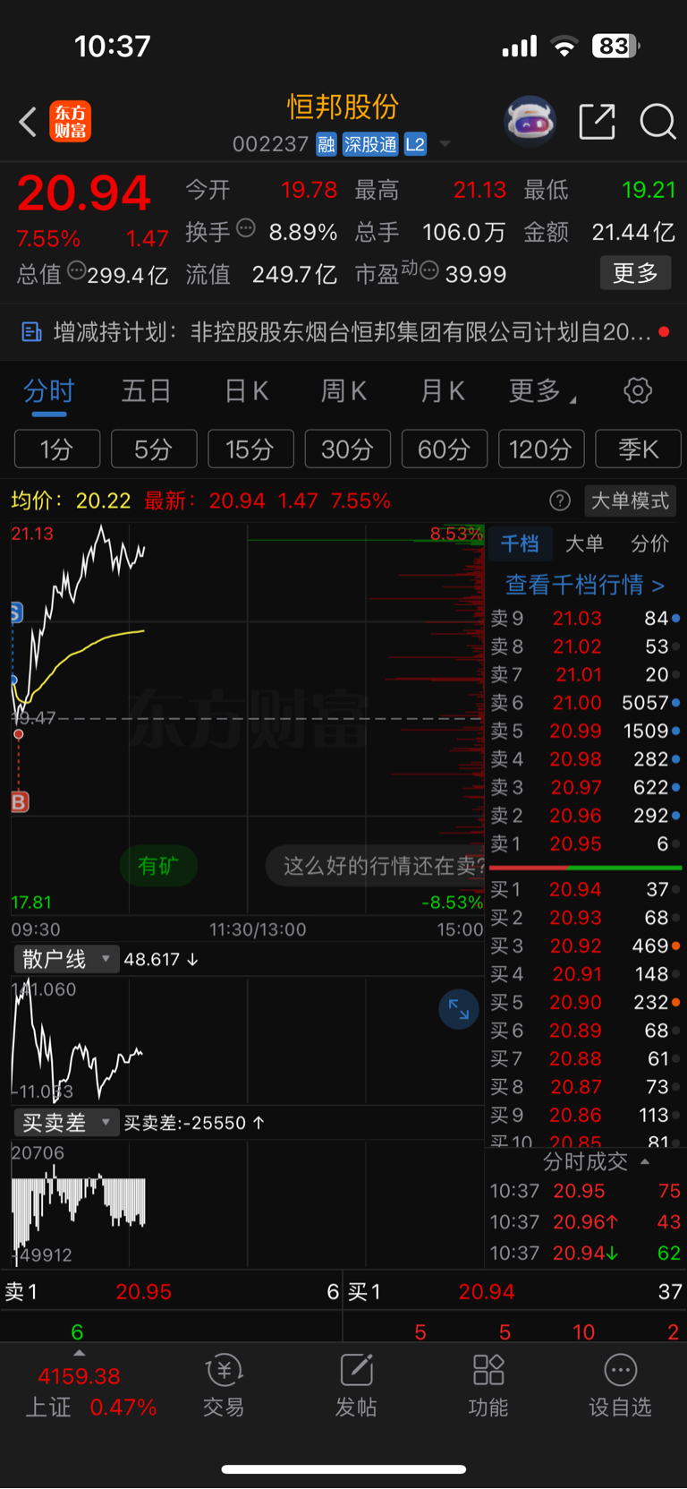 $恒邦股份(SZ002237)$ 卄……才T三个点,下次一定要先买入再卖