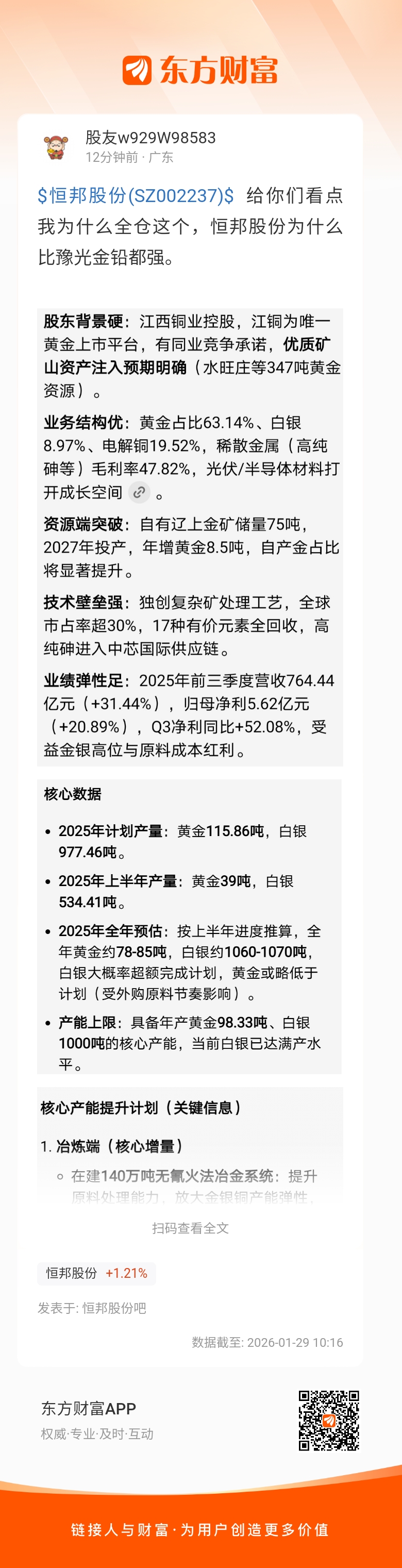 温馨提示: 1.根据《证券法》规定,禁止编造、传播虚假信息或者误导性信息,扰乱证券市场;2.用户在本社区发表的所有资料、言论等仅代表个人观点,与本网站立场无关,不对您构成任何投资建议。用户应基于自己的独立判断,自行决定证券投资并承担相应风险。《东方财富社区管理规定》