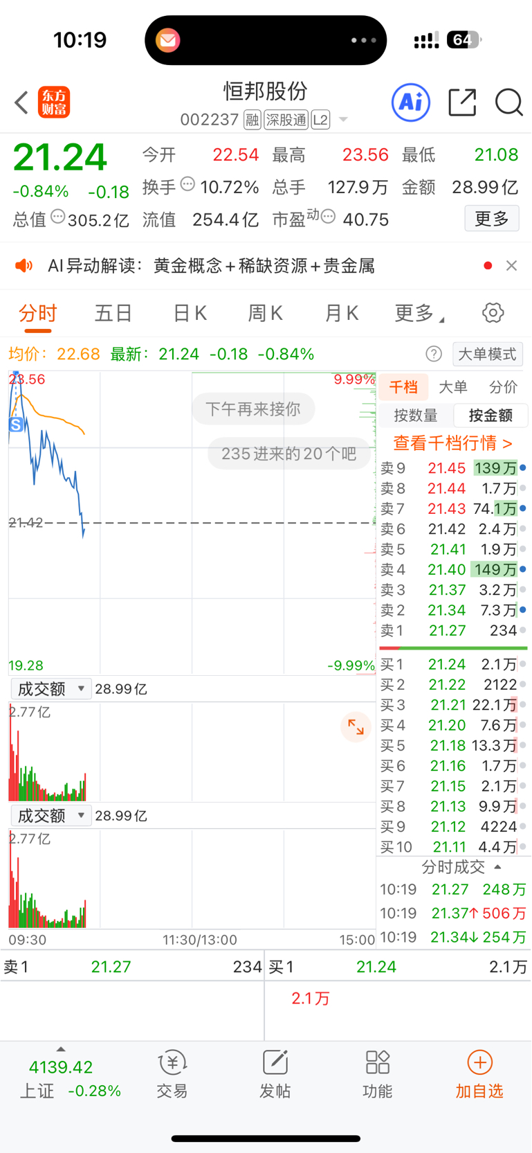 $恒邦股份(SZ002237)$ 涨停不走你们怎么想的