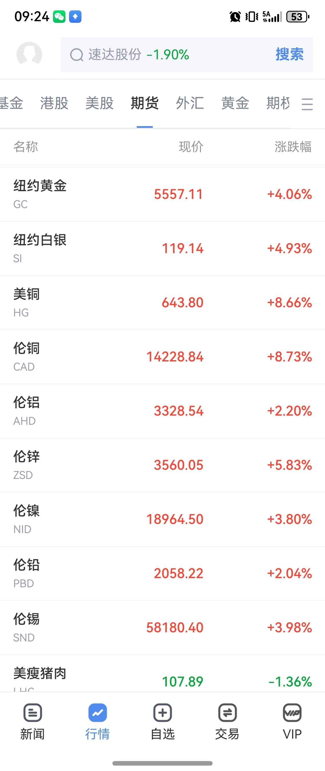 国际黄金4个多点,白银接近5个点,铜接近9个点,明天继续涨停吧,加油