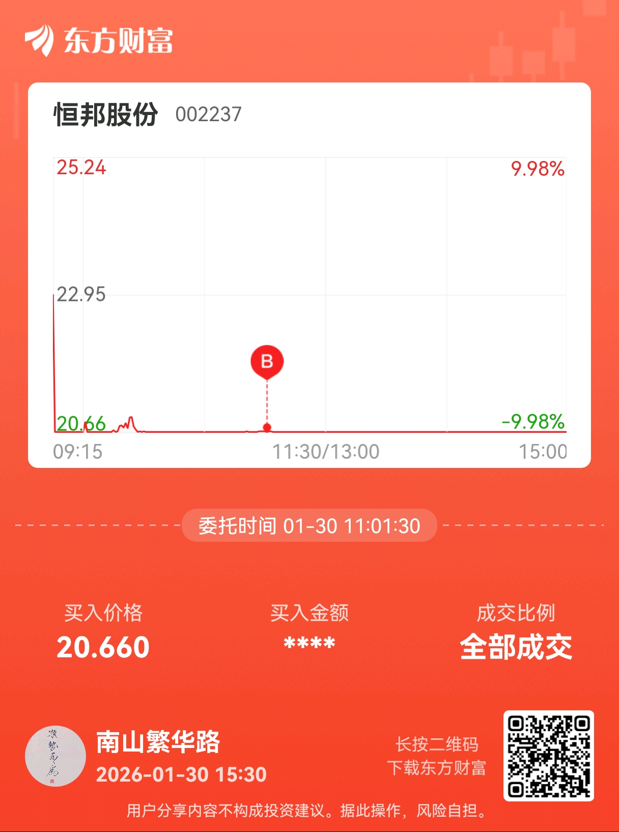 温馨提示: 1.根据《证券法》规定,禁止编造、传播虚假信息或者误导性信息,扰乱证券市场;2.用户在本社区发表的所有资料、言论等仅代表个人观点,与本网站立场无关,不对您构成任何投资建议。用户应基于自己的独立判断,自行决定证券投资并承担相应风险。《东方财富社区管理规定》