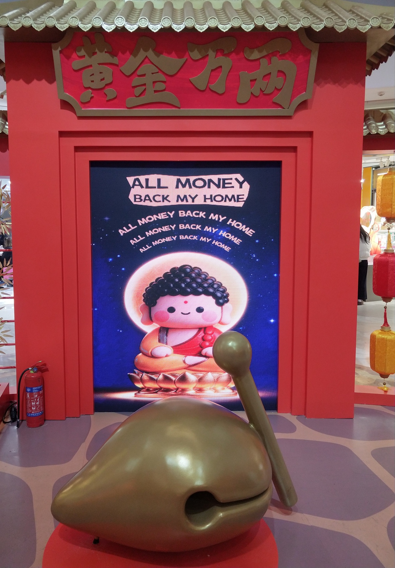 ……大悦城里,搭了这么一个小布景,我给它念叨两句啊,黄金,黄金,快回来!