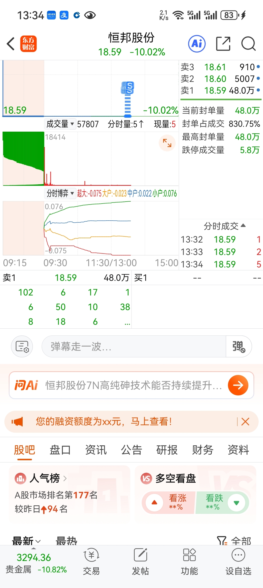 $恒邦股份(SZ002237)$ 快点吃了我的单子吧亏10个点