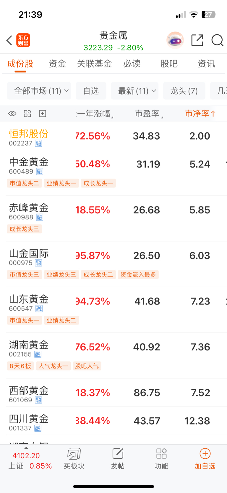 $恒邦股份(SZ002237)$ 请问董秘,你们市净在板块中垫底怎么回事?最好30了,恒邦才2,你们对得起投资着吗?