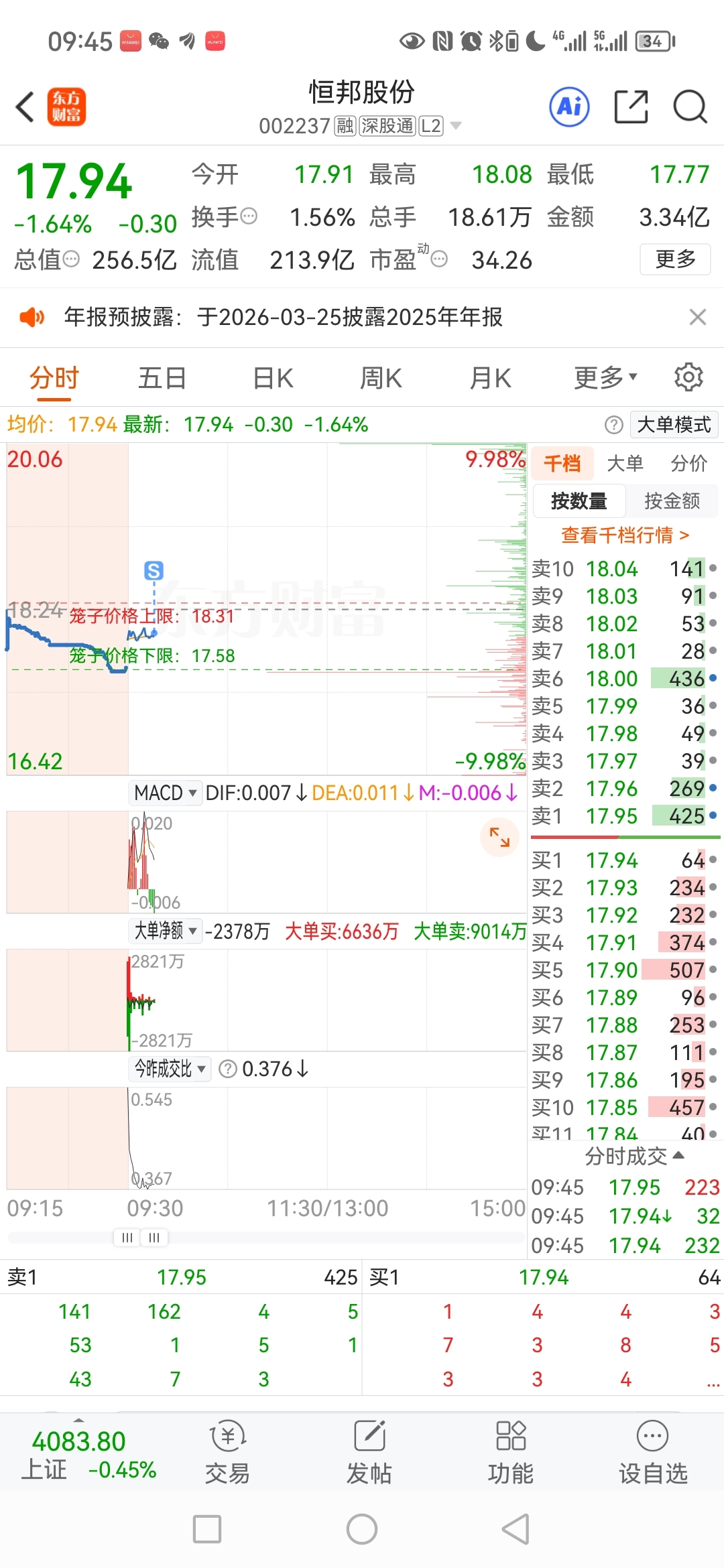 温馨提示: 1.根据《证券法》规定,禁止编造、传播虚假信息或者误导性信息,扰乱证券市场;2.用户在本社区发表的所有资料、言论等仅代表个人观点,与本网站立场无关,不对您构成任何投资建议。用户应基于自己的独立判断,自行决定证券投资并承担相应风险。《东方财富社区管理规定》