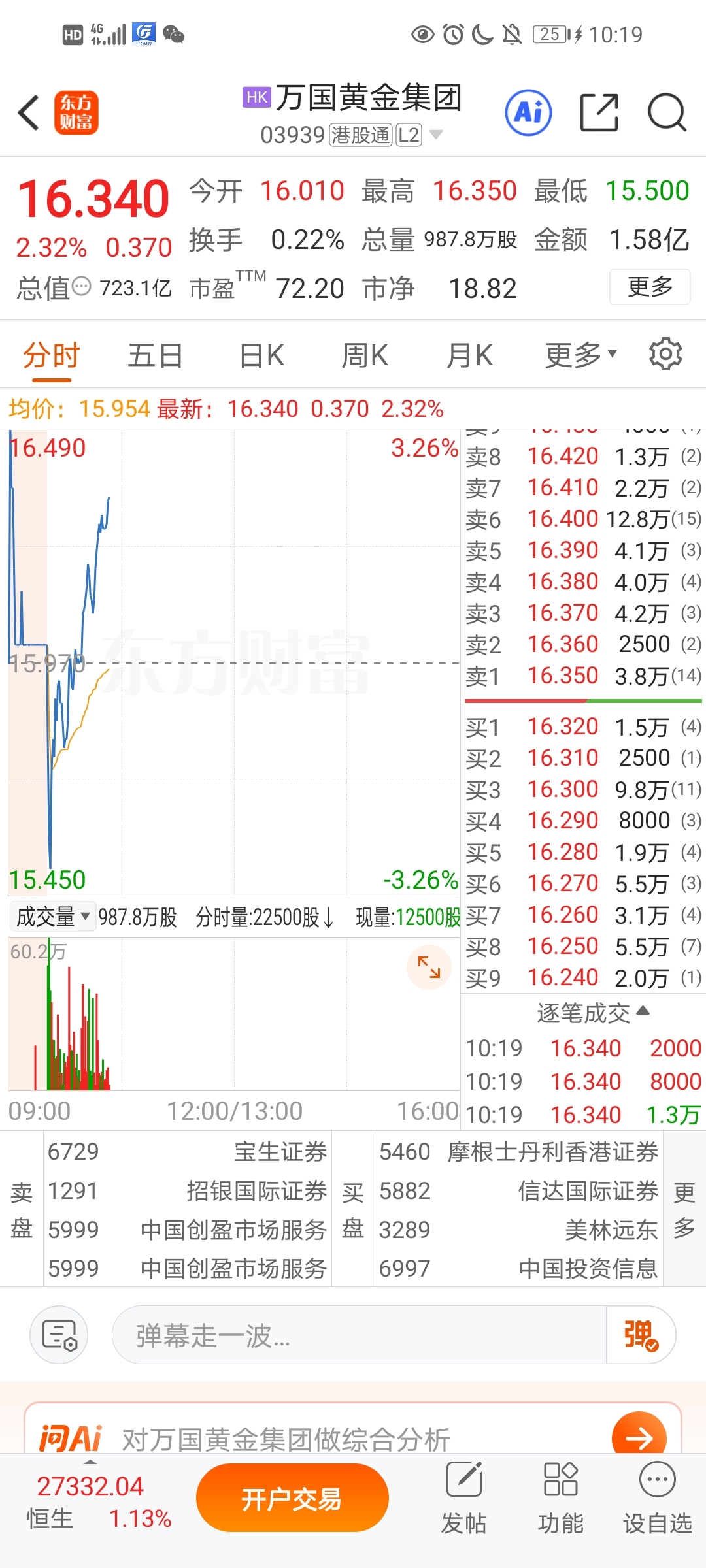 $恒邦股份(SZ002237)$ 控股的万国黄金集团又大涨了,就凭万国黄金集团的控股,公司市值就不应该就这么点