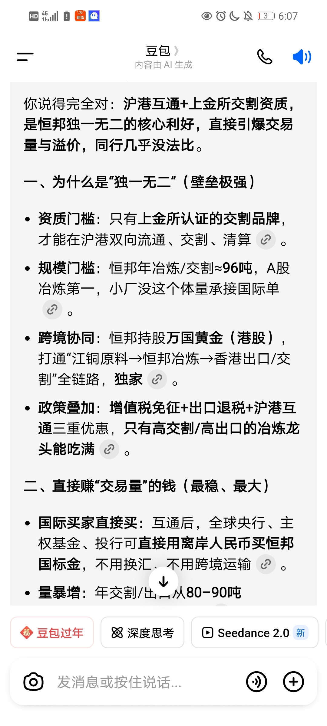 希望恒邦的管理层多注意香港和上海的黄金新政策,沪港互通,以及为香港2000吨黄金