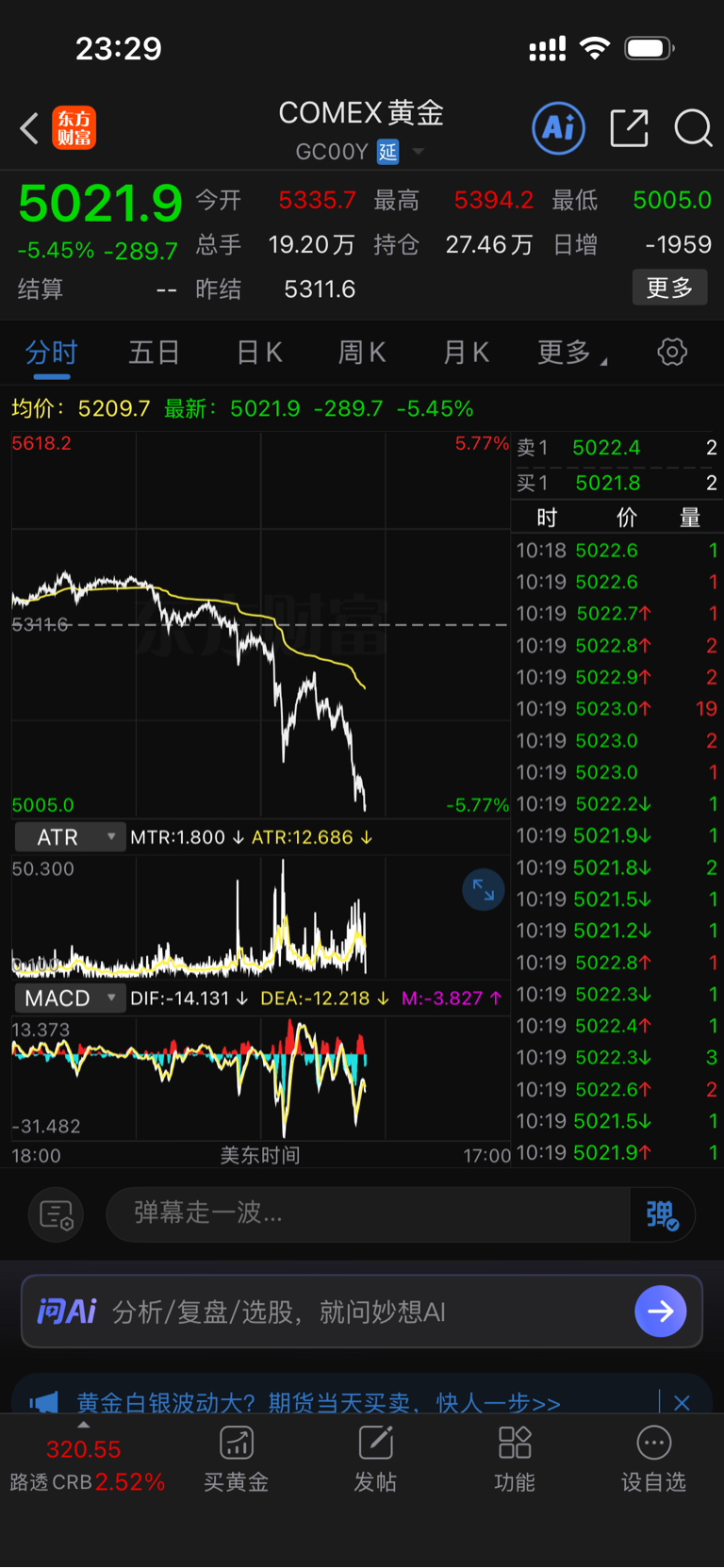 黄金涨得时候倒数第一,跌的时候肯定是正的第一,明天竞价跑