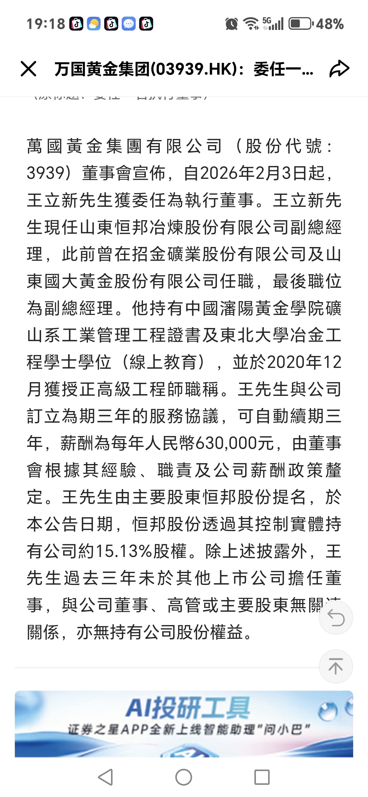已经减持了万国黄金0.81%,业绩都还没50%的增幅,这扣非利润究竟做得有多差?