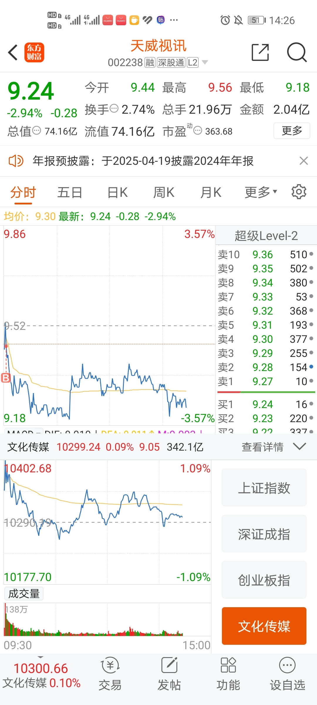 $天威视讯(SZ002238)$ 全是量化在操作!