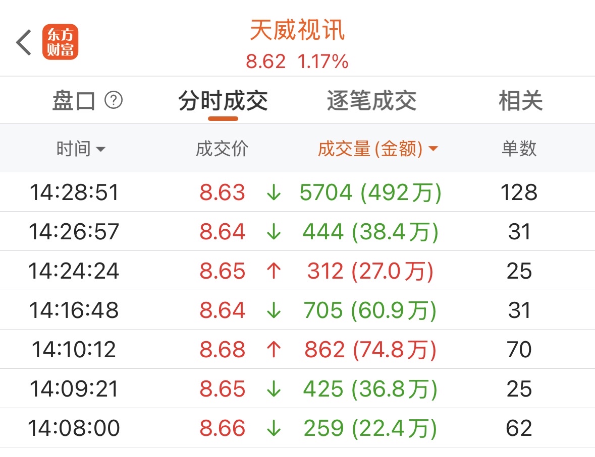 $天威视讯(SZ002238)$ 看来还不能进,尾盘主力在出货,明天妥妥低开再接手