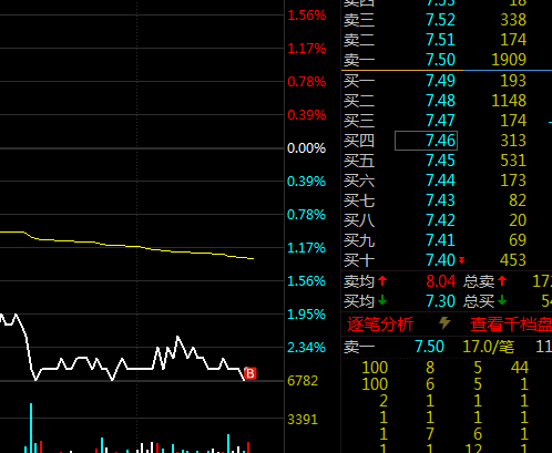 尾盘买入:7.49元;超短逻辑:60分钟-49.95,120分钟-49.69,日线有动能修正迹象;明天有反弹,反弹力度未知