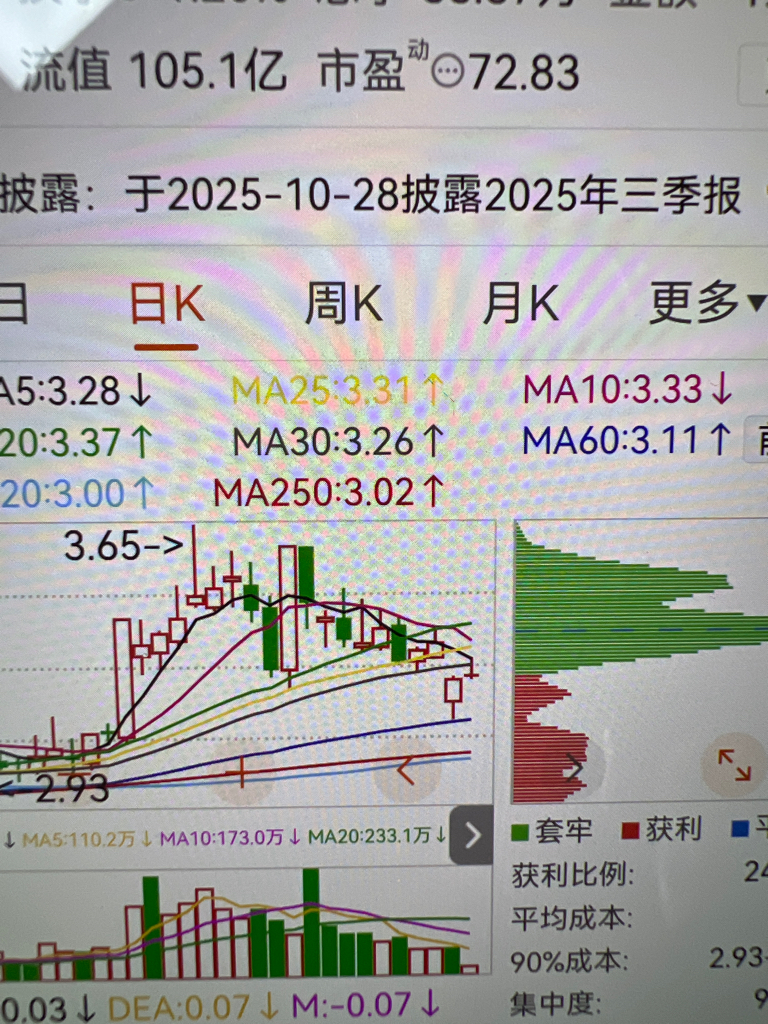 $奥特佳(SZ002239)$ 十天线死叉20天!五天线328压住了!主力成本25天331!狗主力玩!我可不陪他!各位管住手!不上五天!十天线不拐头向上千万别买!