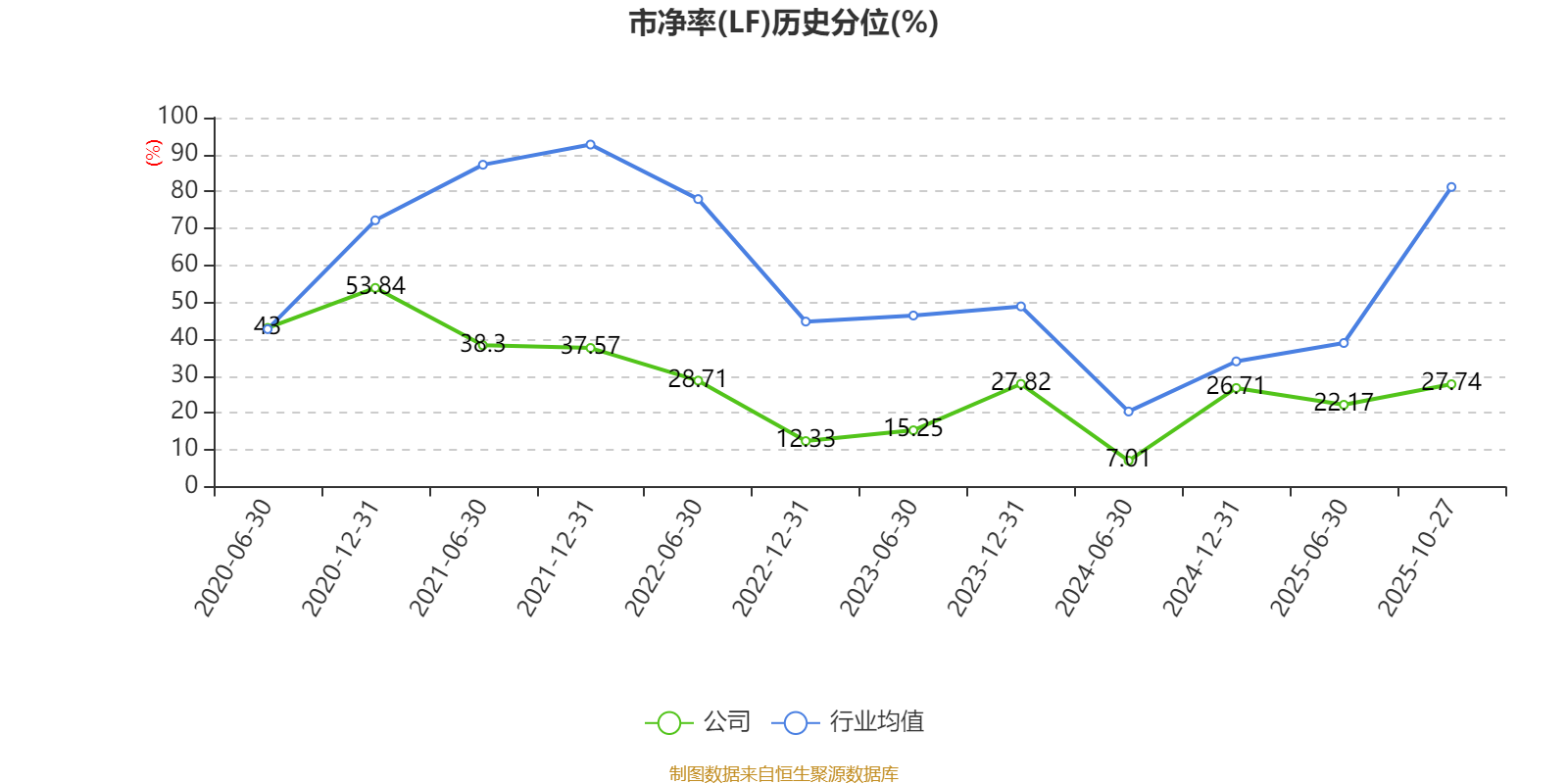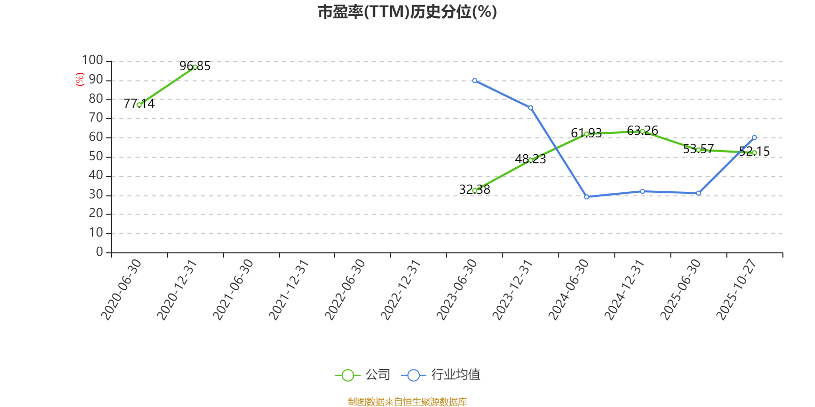 市盈率、市净率为负时,不显示当期分位数,会导致折线图中断。