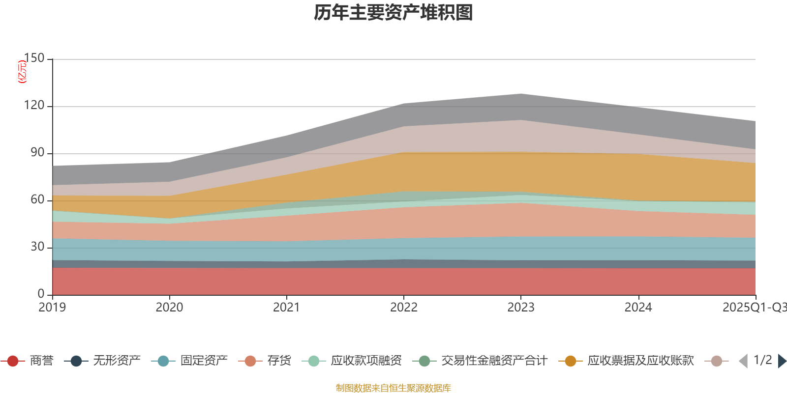 资产重大变化方面,截至2025年三季度末,公司应收票据及应收账款较上年末减少17.08%,占公司总资产比重下降2.61个百分点;货币资金较上年末减少29.9%,占公司总资产比重下降2.53个百分点;应收款项融资较上年末增加25.22%,占公司总资产比重上升1.87个百分点;商誉较上年末减少0.12%,占公司总资产比重上升1.11个百分点。