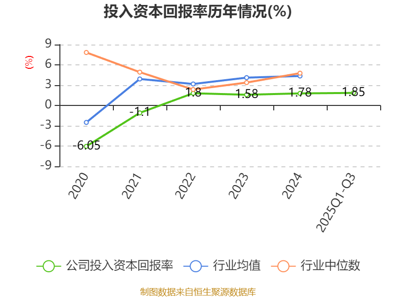 盈利能力方面, 2025年前三季度公司加权平均净资产收益率为2.02%,同比上升0.37个百分点。公司2025年前三季度投入资本回报率为1.85%,较上年同期上升0.5个百分点。