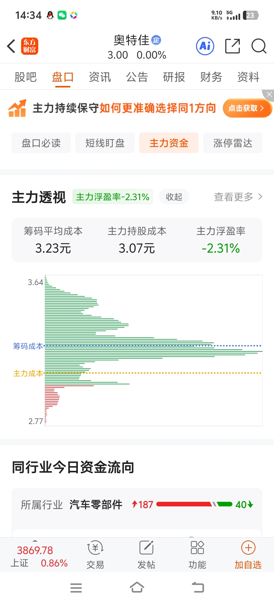 $奥特佳(SZ002239)$ 这个票主力都赔钱了