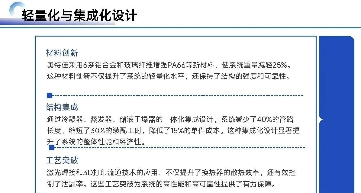 $奥特佳(SZ002239)$ 奥特佳全国首创新能源汽车高压平台一体化集成:1000V碳化硅高压平台空调压缩机,系统效率与可靠性达到行业领先水平;R290模块化热泵系统采用环保工质,破解新能源汽车热管理难题,核心指标全面领先业界。
