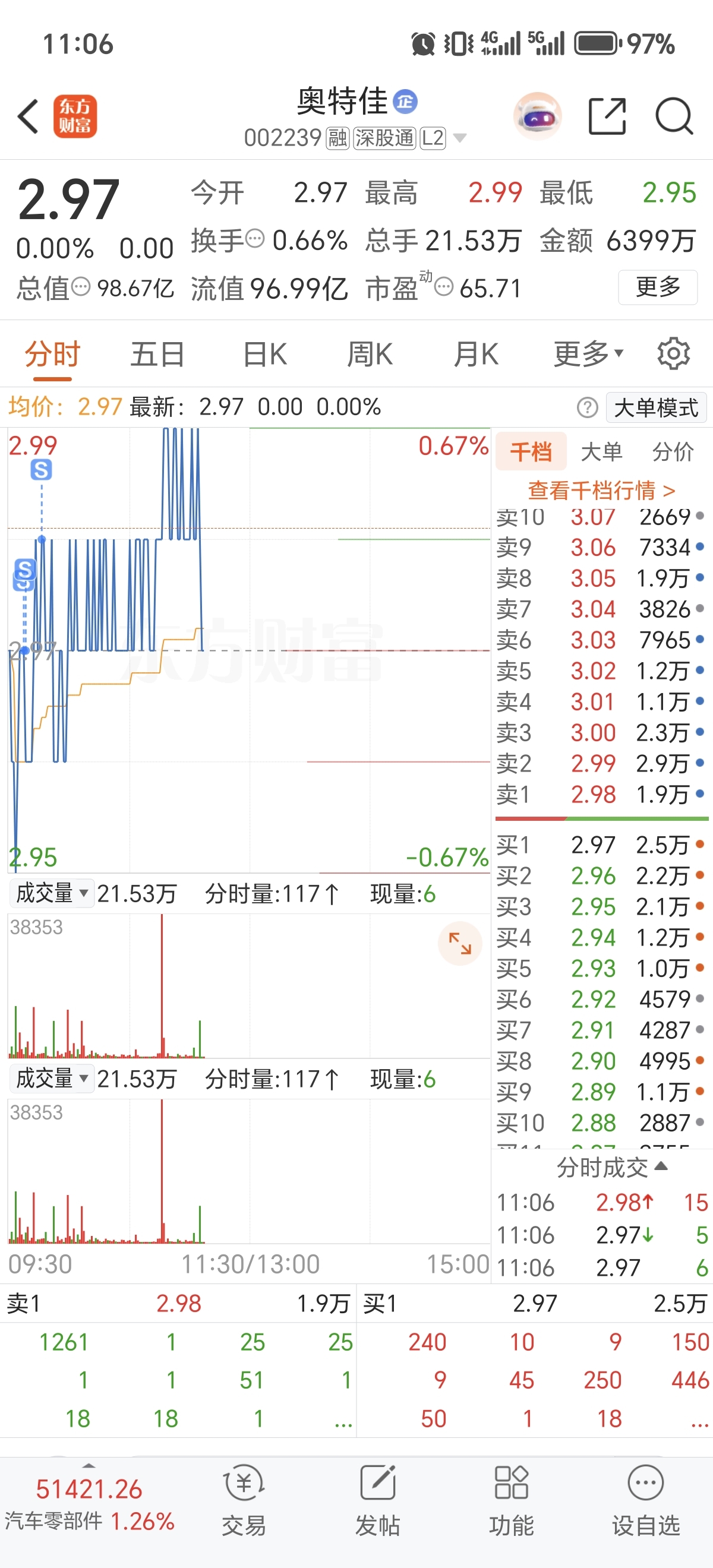 $奥特佳(SZ002239)$ 渣渣,走了早上2.97和2.98亏钱割肉了