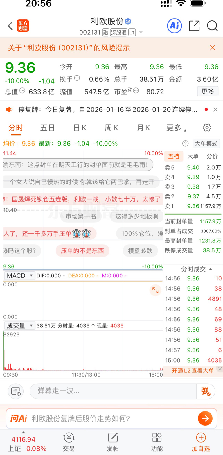 $奥特佳(SZ002239)$ 里欧挂彩了!工行为期也在24小时内了!