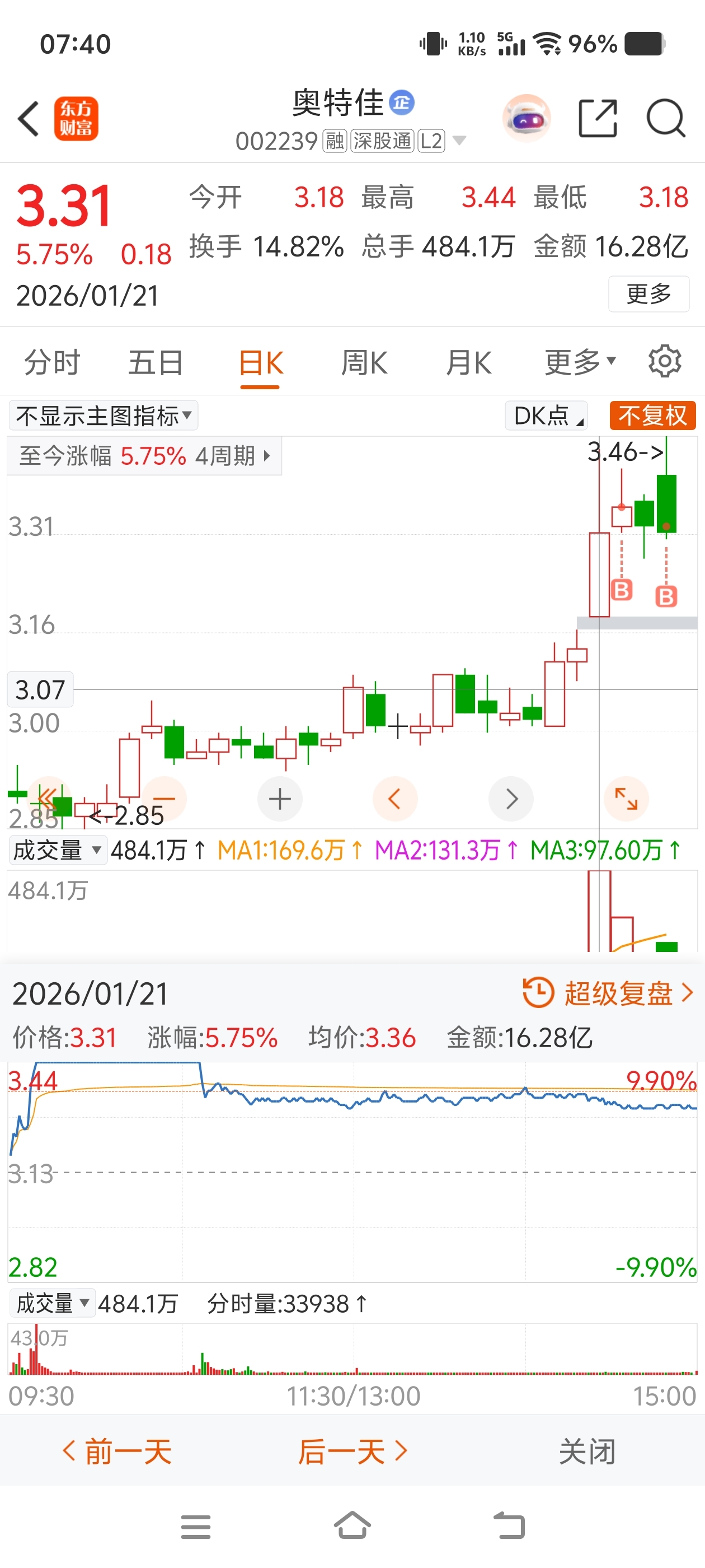 $奥特佳(SZ002239)$ 一群韭菜还想吃肉,那天的强势放量封板,开板主力控价3.31左右,连续几天的震荡控价3.3明显是提前得到了消息震荡洗盘拿筹码,今天集合竞价能进来算我输