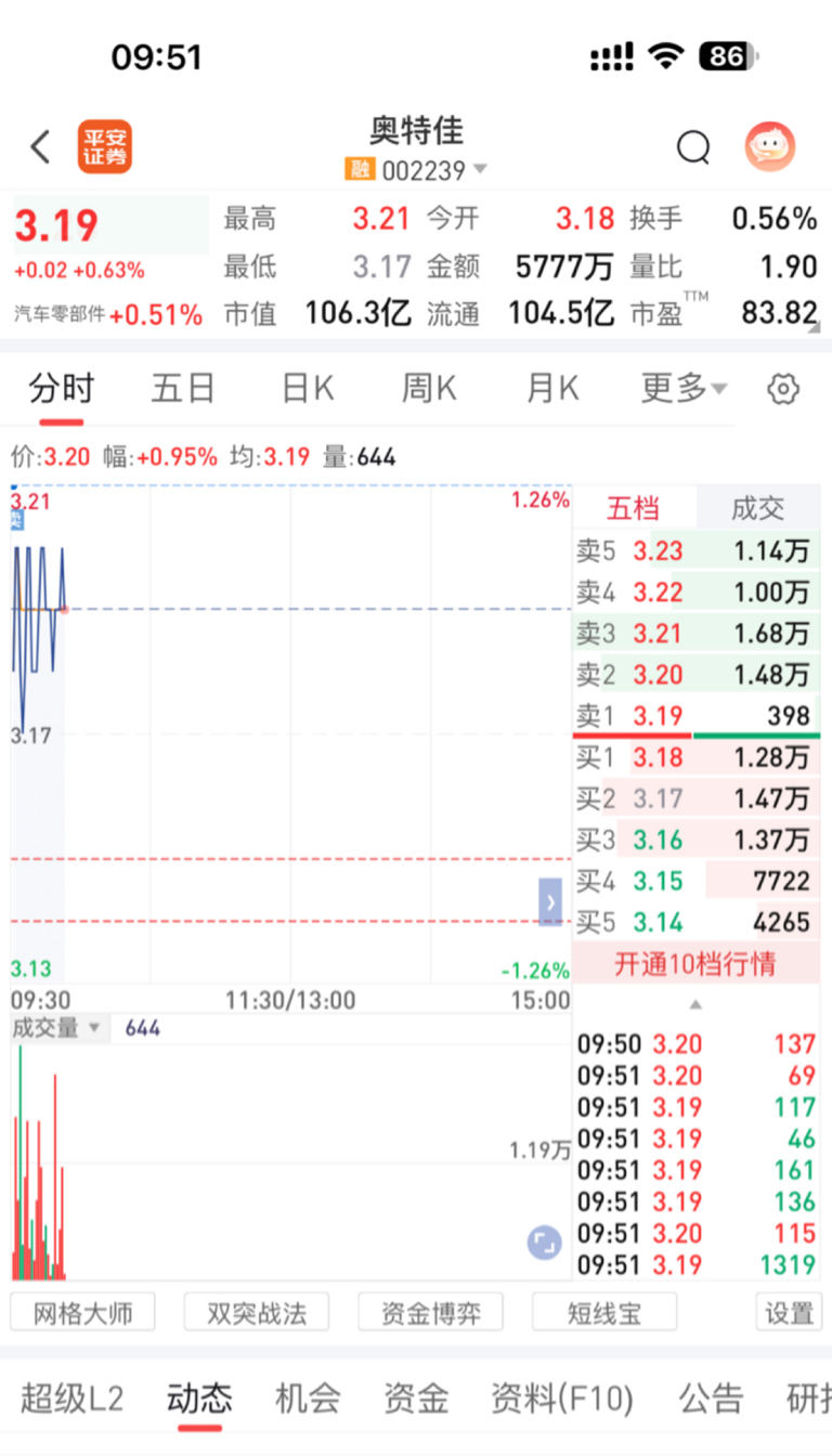 $奥特佳(SZ002239)$ 3.21出掉昨天尾盘3.17拿的筹码。今天还给拿回来的机会吗?