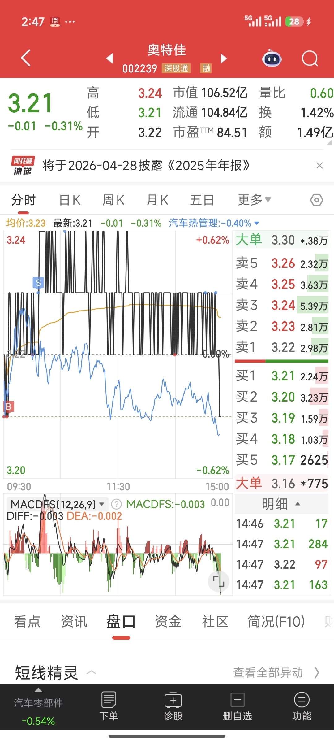 $奥特佳(SZ002239)$ 幸亏没等324,都t完了,竟然还砸了一分