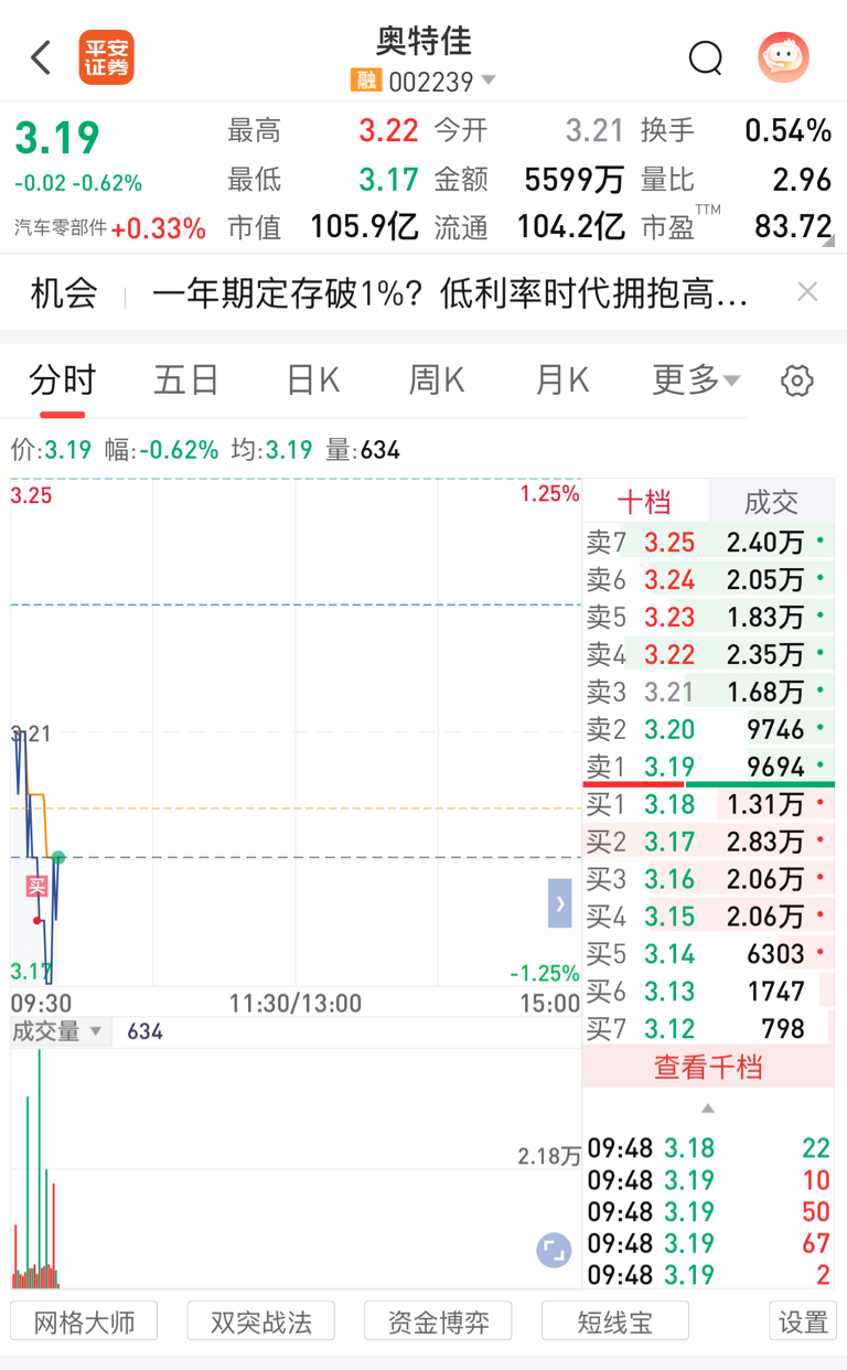 $奥特佳(SZ002239)$ 3.18接回昨天3.24出掉的。还是6分T