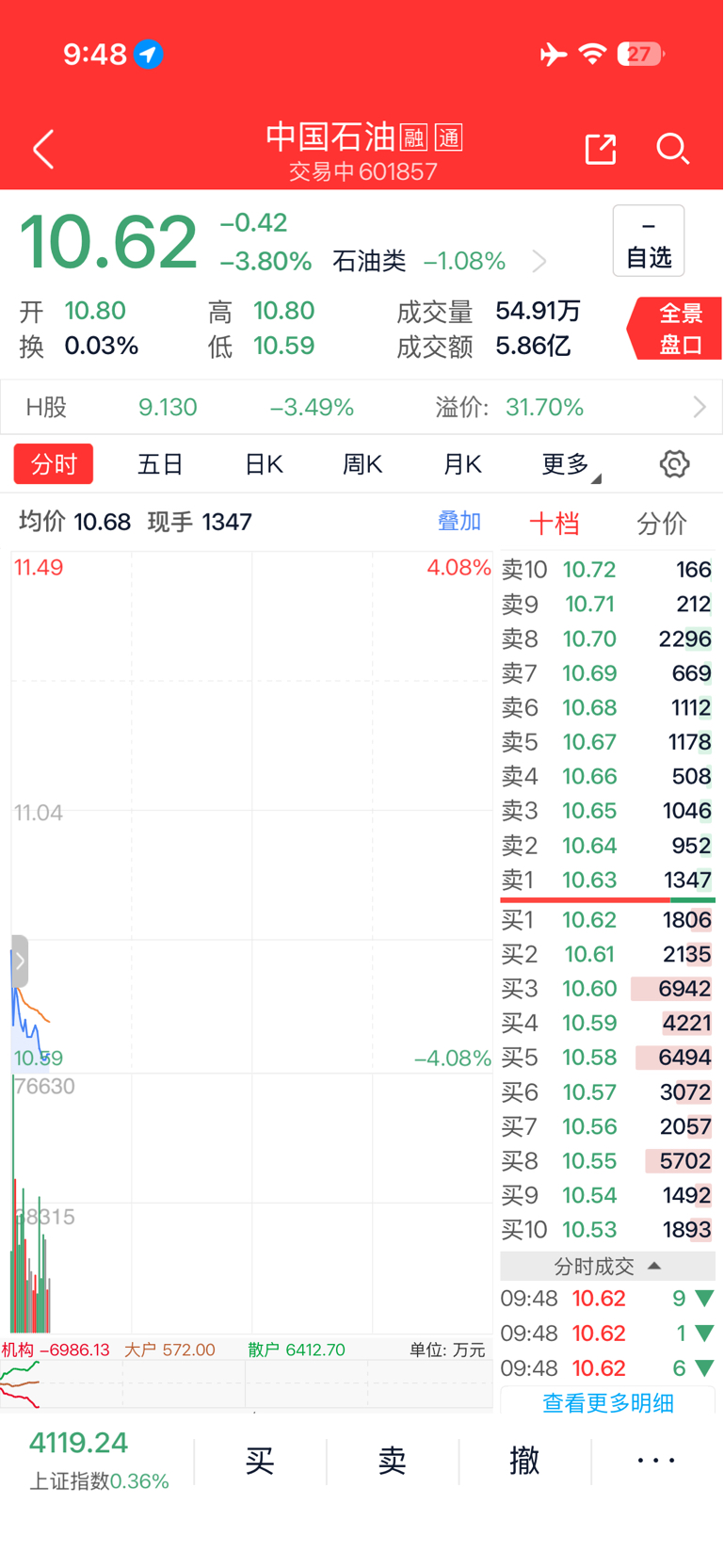 $奥特佳(SZ002239)$ 今天不跟汽车零部件,今天走势跟中石油,