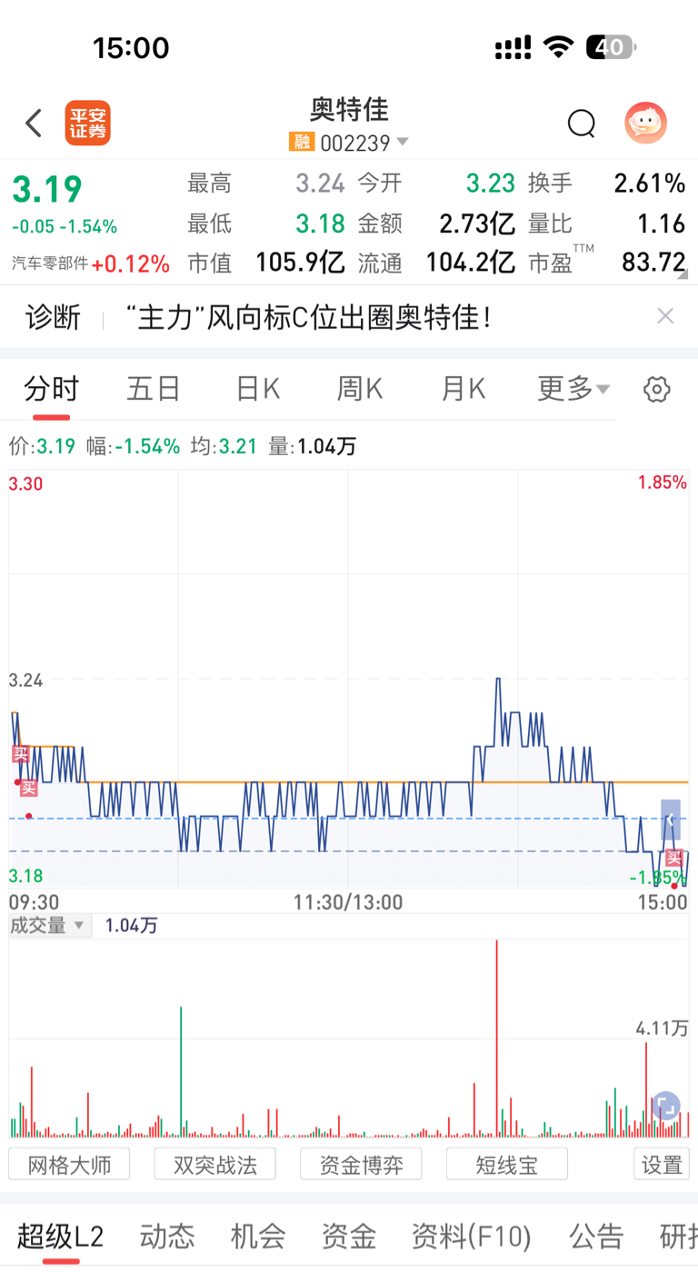 $奥特佳(SZ002239)$ 今天一个卖单都没挂。进点货!今年结束了。明年大家都翻倍!祝兄弟们新年快乐。年少有为开宝马,飞机不用自己打!