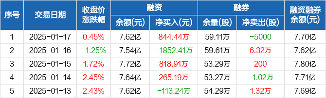 盛新锂能:融资净买入844.44万元,融资余额7.62亿元(01-17)
