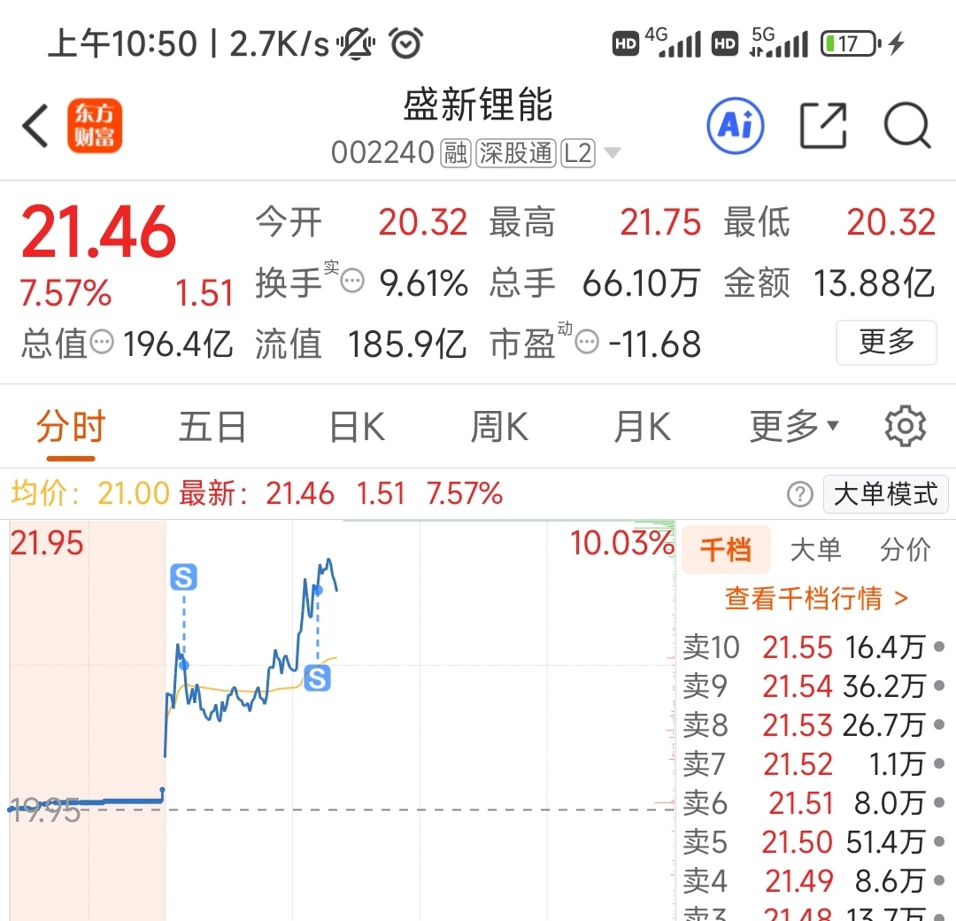 $盛新锂能(SZ002240)$ 走了,感谢主力