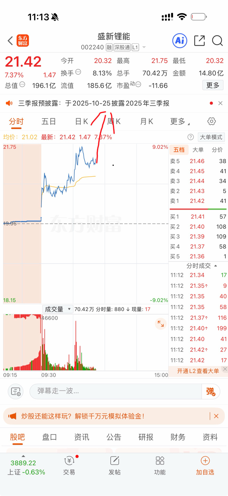 $盛新锂能(SZ002240)$ 主力起来上班了