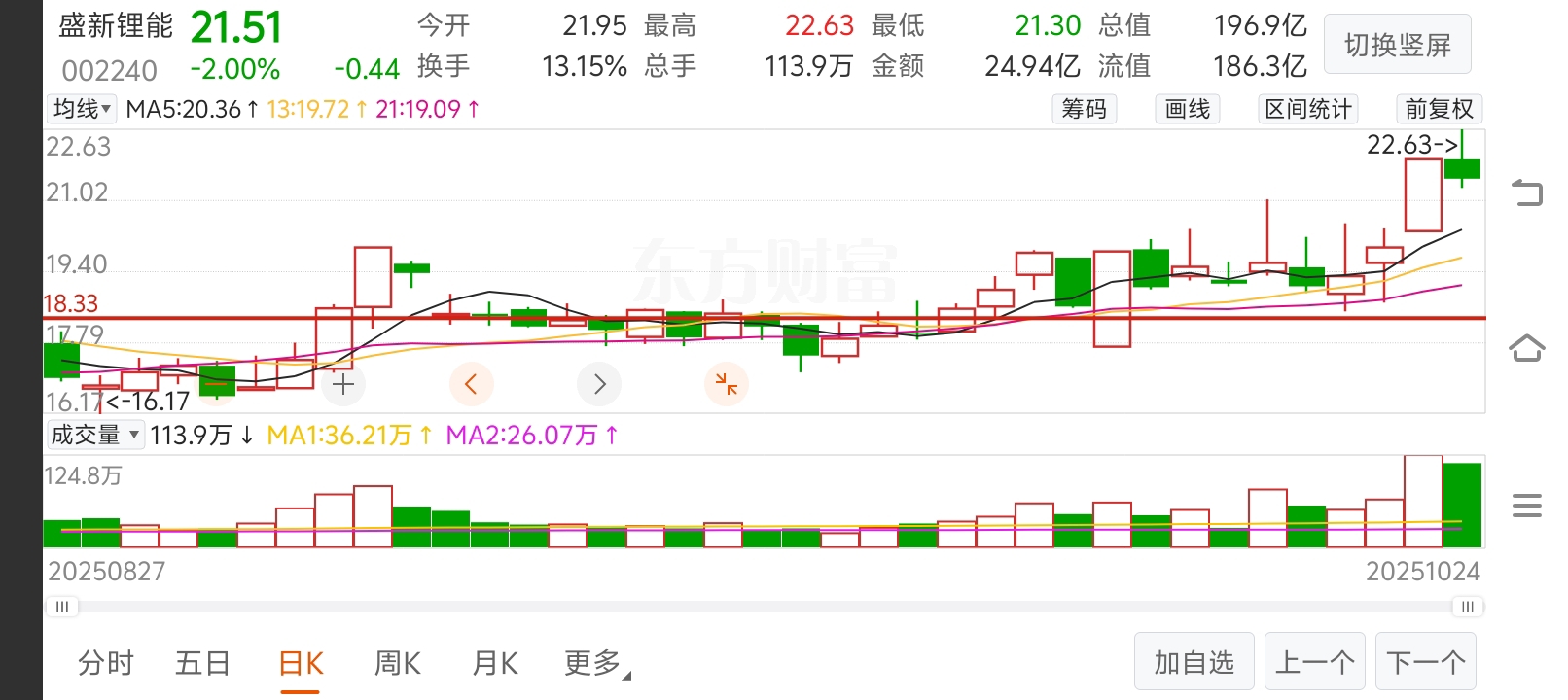 $盛新锂能(SZ002240)$ 复盘。三季度扭亏为盈,逻辑上支持成为牛股。趋势上,稳稳站在牛熊分界线上方并放量涨停,代表资金已经开始大幅流入持续流入,回踩5日均线即为买入机会,后市非常看好!