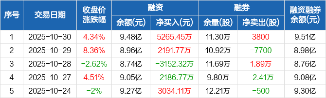 盛新锂能:融资净买入5265.45万元,融资余额9.48亿元(10-30)