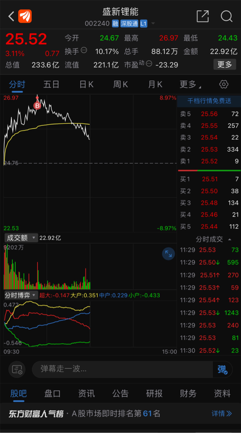 $盛新锂能(SZ002240)$ 不好意思各位,今天给大家买跌了