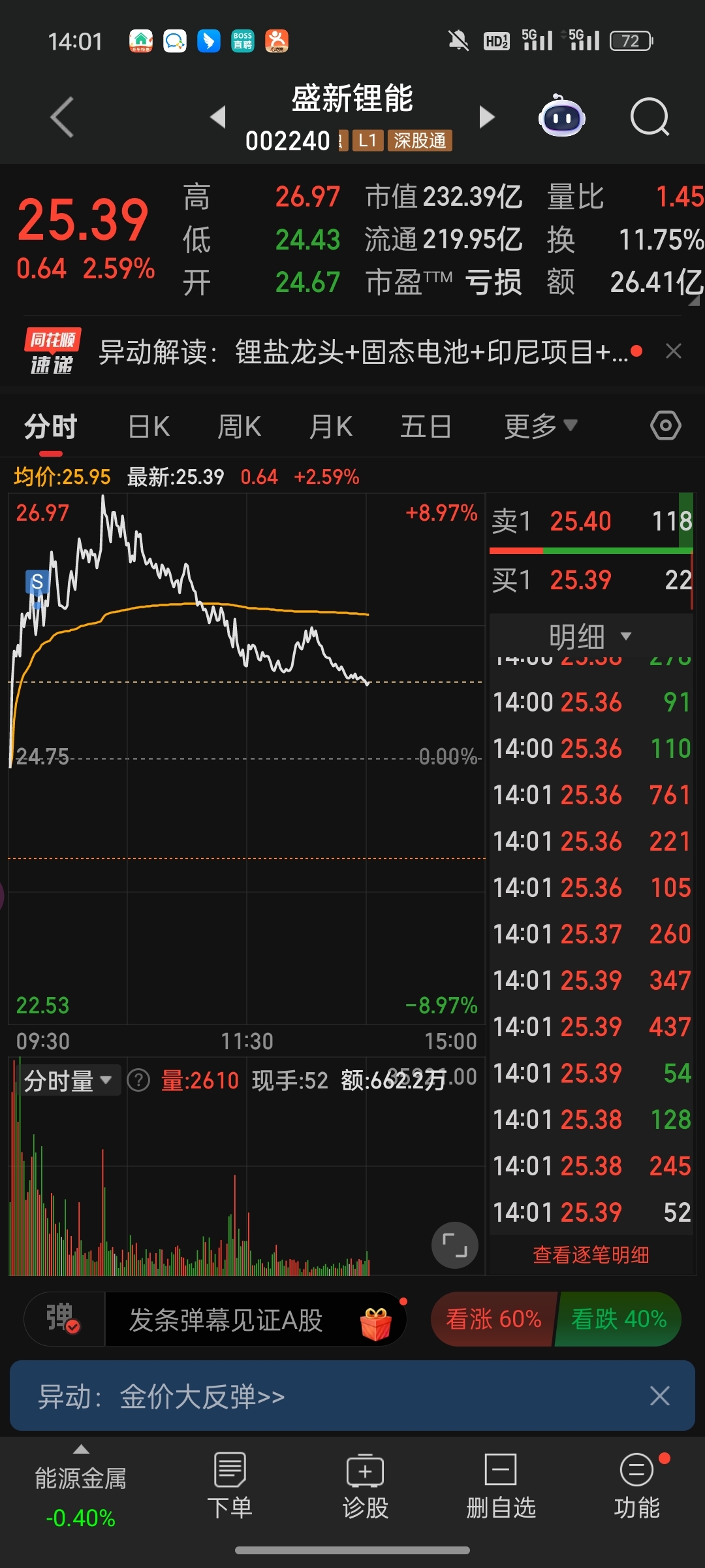 $盛新锂能(SZ002240)$ 感谢盘中26.26对子老哥把我洗出去