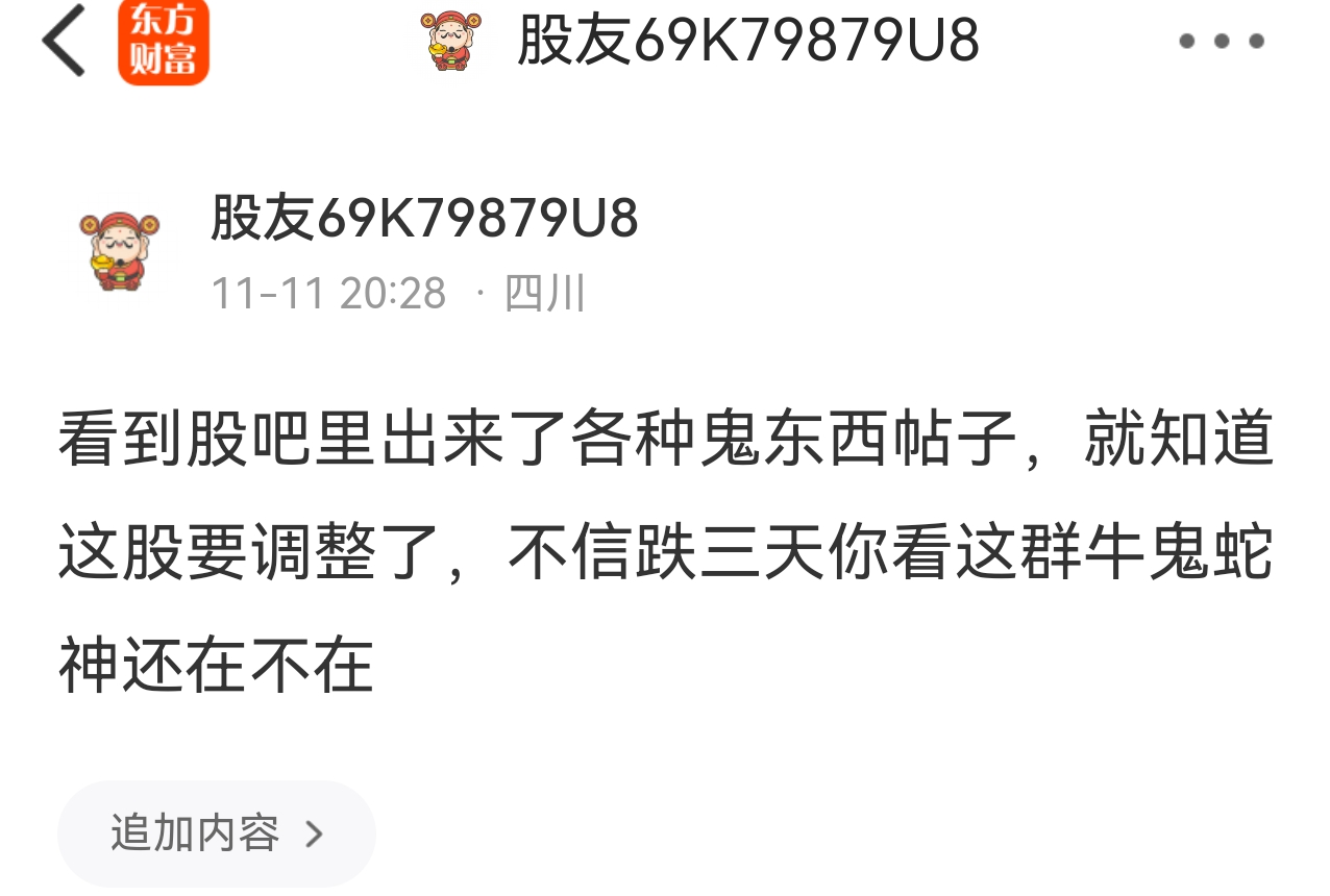 温馨提示: 1.根据《证券法》规定,禁止编造、传播虚假信息或者误导性信息,扰乱证券市场;2.用户在本社区发表的所有资料、言论等仅代表个人观点,与本网站立场无关,不对您构成任何投资建议。用户应基于自己的独立判断,自行决定证券投资并承担相应风险。《东方财富社区管理规定》